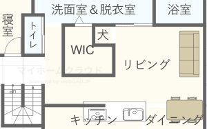 ケージを置く場所を確保するのではなく、ドッグスペースそのものを間取りの一部として設計に組み込む。