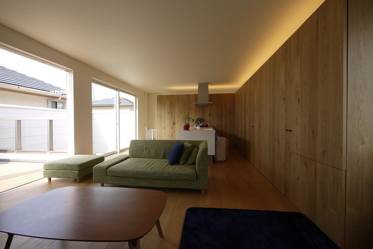 光源が遠くて天井まで余計なものが無いので空間が広く感じられ、和らかい光でリラックスできる空間が出来ました。