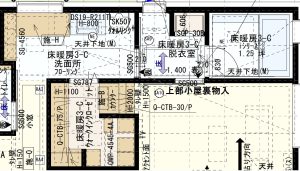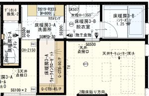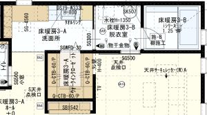 その後できた最初の図面【3-0】で目標の効率的な洗濯動線はほぼできあがり、その後の修正を経て水周りは100%満足いく生活動線が完成しました。